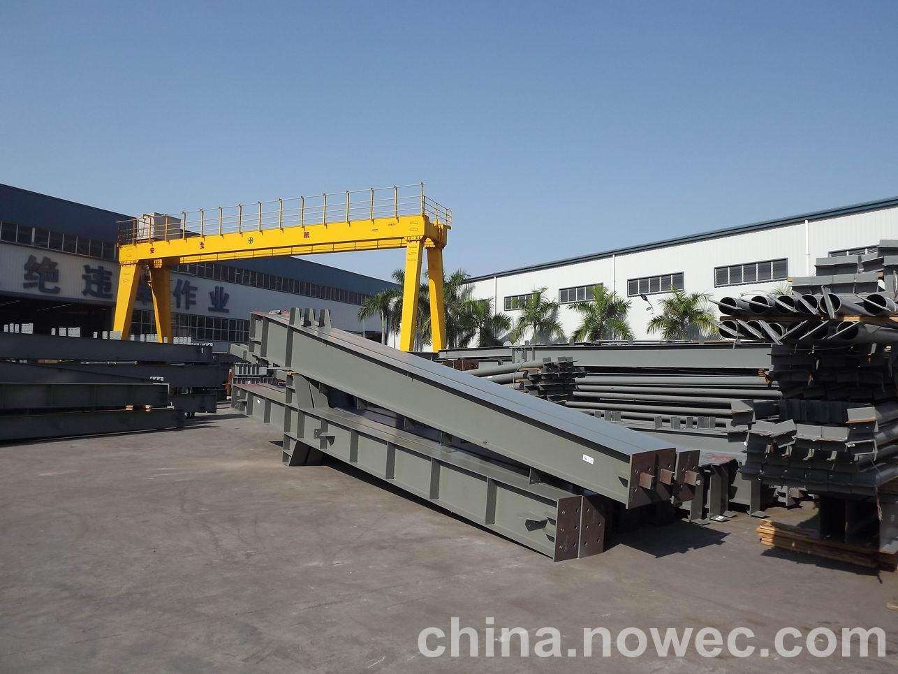 条状单元一般沿长跨方向分割,其宽度约为1~3个网格,其长度为l2或l2/2(l2为短跨跨距)。块状单元一般沿冀州网架平面纵横向分割成矩形或正方形单元。每个单元的重量以现有起重机能胜任为准。条(块)与条(块)之间可以直接拼装,也可空一网格在高空拼装。由于条(块)状单元是在地面拼装,因而高空作业量较高空散装法大为减少,拼装支架也减少很多,又能充分利用现有起重设备,故较经济。这种安装方法适用于分割后网架的钢度和受力状况改变较小的各类中小型网架,如两向正交正放四角锥、正放抽空四角锥等网架。